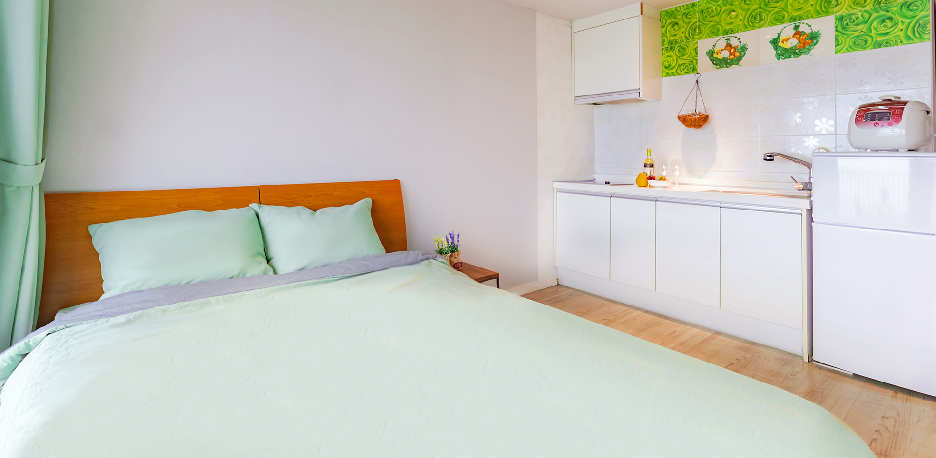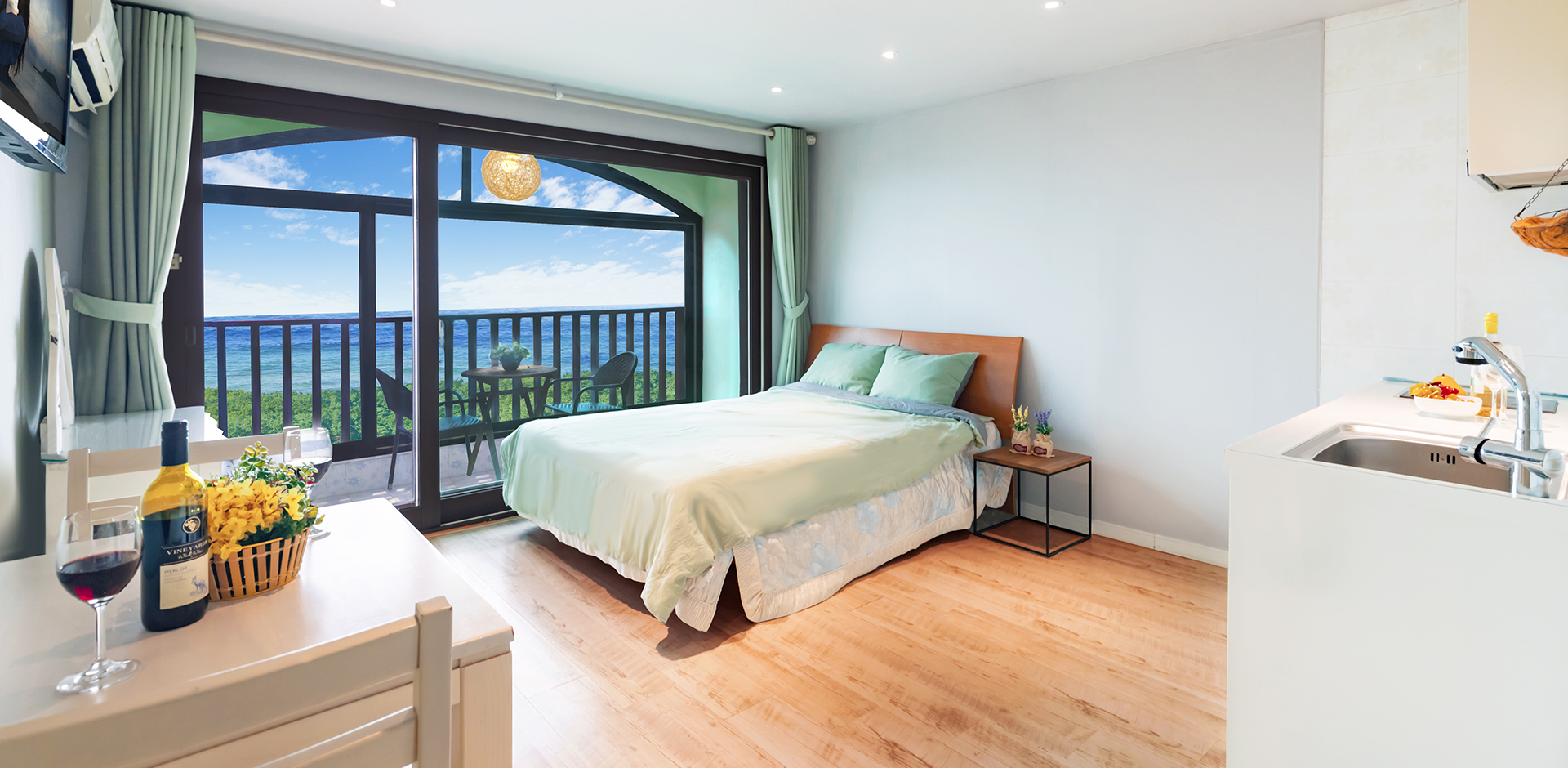 객실비취품 : 냉장고, 싱크대, 전기밥솥, 식기세트, 벽걸이TV, 식탁, 드라이기, 에어컨, 수건, 세면용품(비누, 샴푸, 바디샴푸, 린스, 치약), 와이파이
